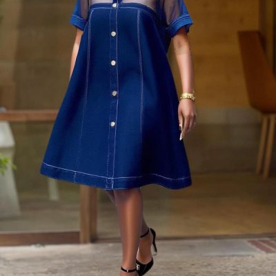 Women Denim Urban Plain Knee Length Dress | Denim Dresses