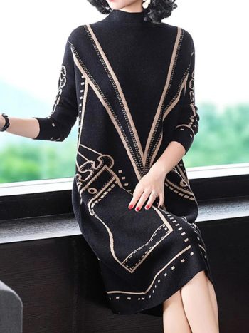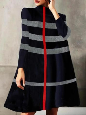 Women Regular Sleeve Loose Casual Striped Mock Neck Sweater Dress | Little Black Dresses