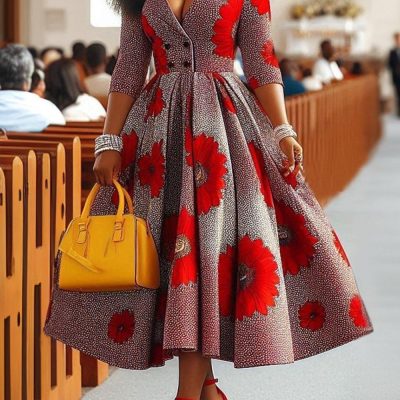 Women Elegant Random Print Midi Dress | Shirt Dresses