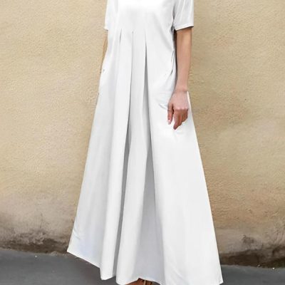 Women Urban Plain Ruffle Sleeve Shirt Collar Maxi Dress | Shirt Dresses