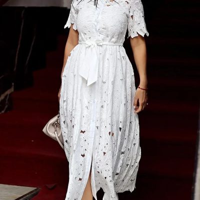 Women Elegant Floral Lace Midi Dress With Belt | Shirt Dresses
