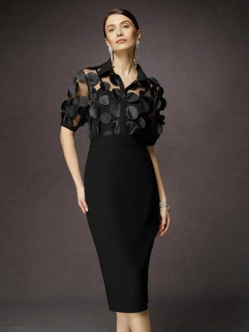 Women Elegant 3D Floral Shirt Collar Knee Length Dress | Shirt Dresses