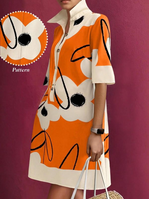 Women Casual Floral Printing Shirt Collar Mini Dress | Floral Dresses