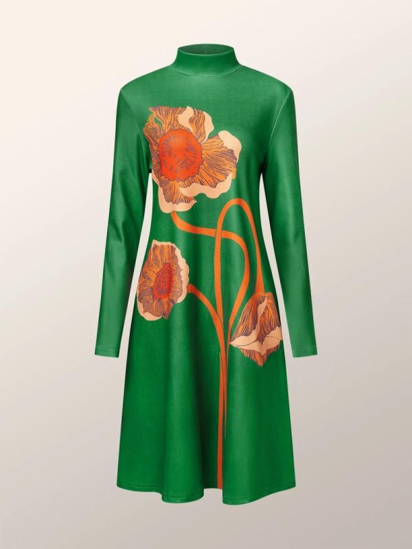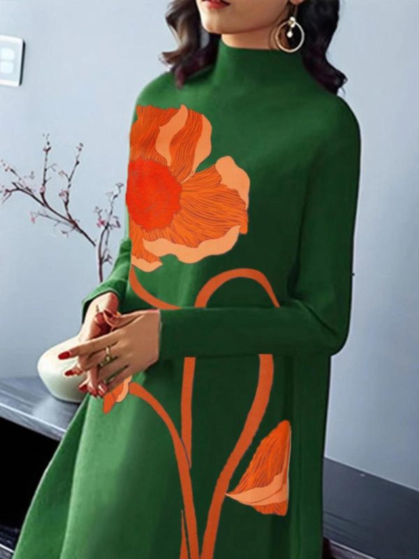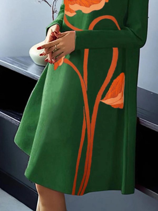 This Timeless Piece Features A Classic Stand Collar, Elegant Floral Prints, And A Figure-Flattering Fit. Embrace The Essence Of Autumn Elegance In This Dress That'S Both Comfortable And Effortlessly Chic.