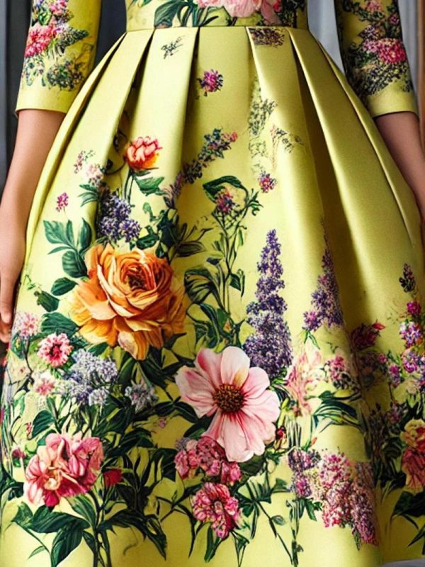Be the first to review “Women Elegant Floral Printing Crew Neck Midi Dress | Floral Dresses”
