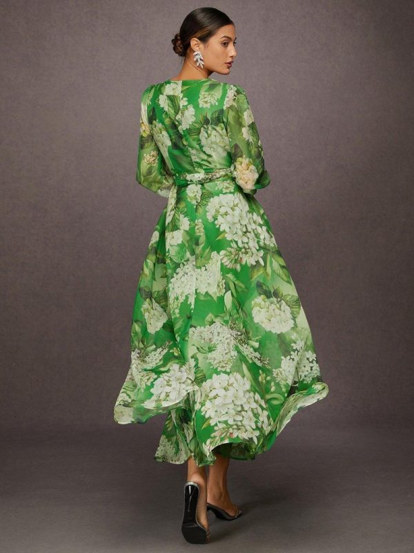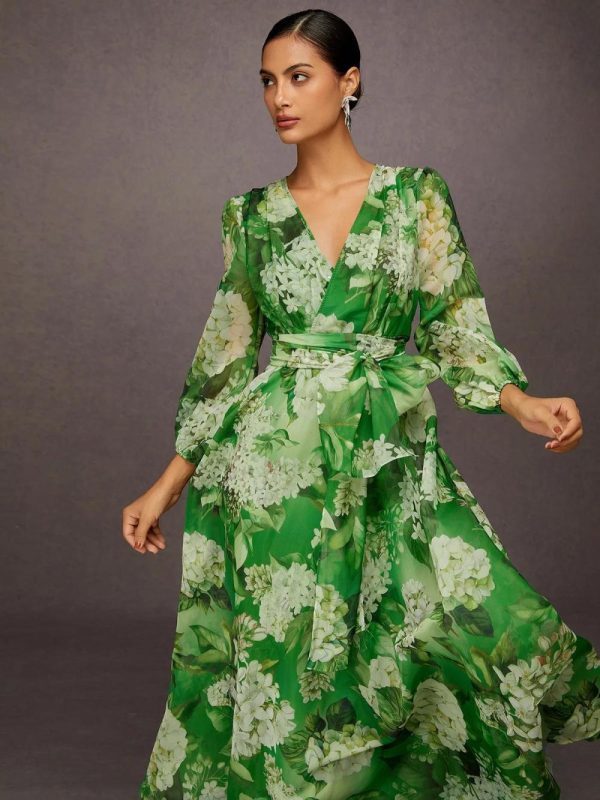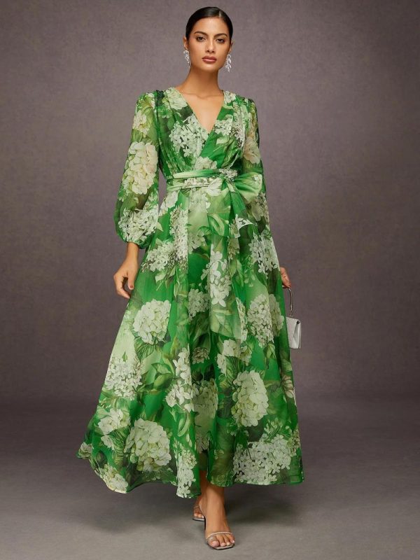 With A Flattering V-Neck, Cinched Waist, And Vibrant Floral Print, This Fully Lined Maxi Dress Features Side Pockets And A Matching Belt—Perfect For Effortless Vacation Elegance.