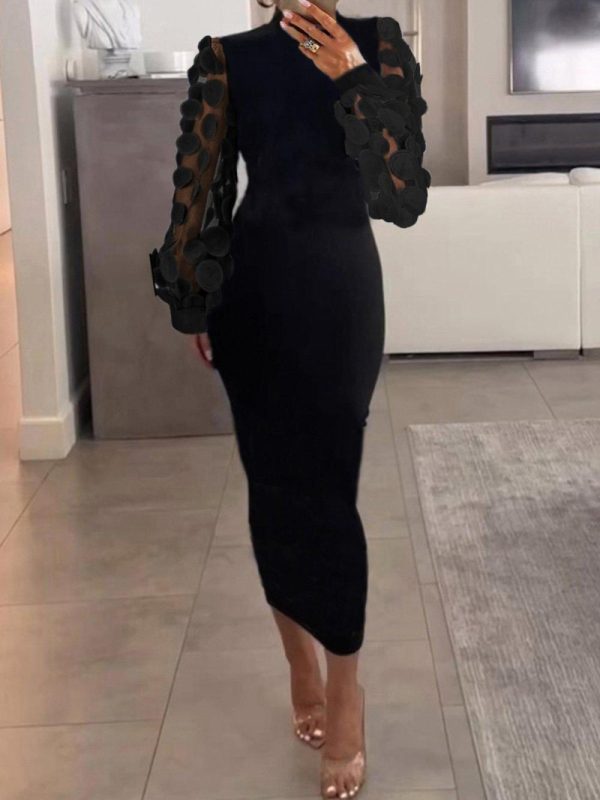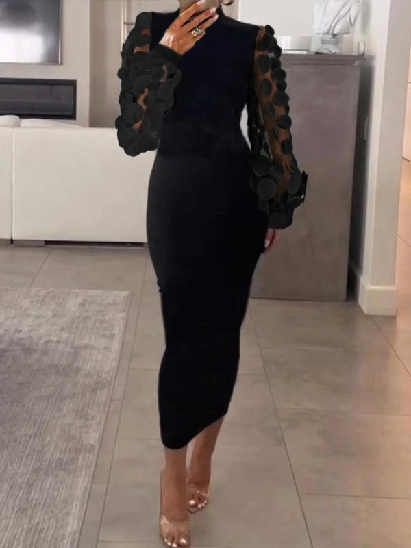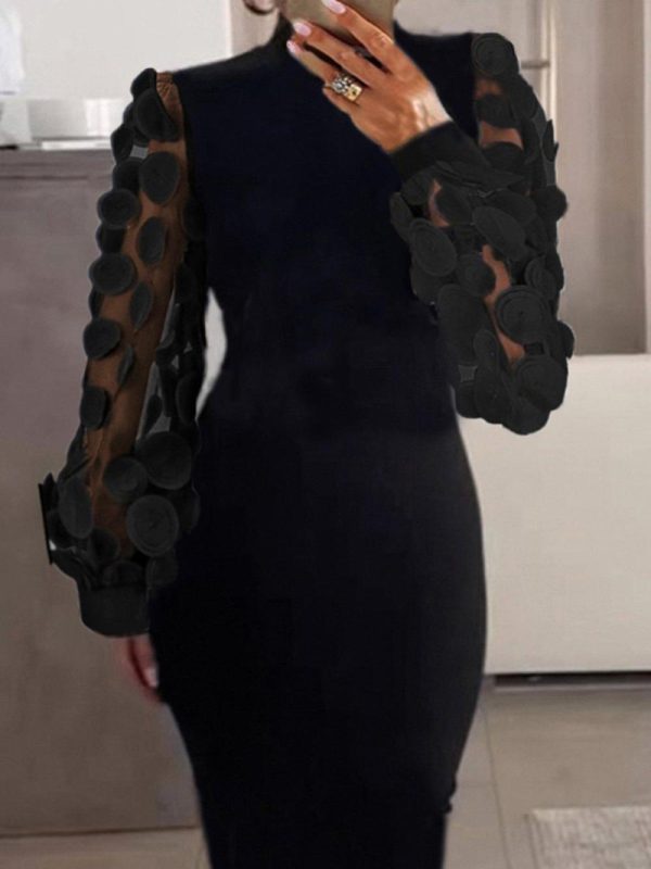 Women Elegant Plain 3D Floral Sheer Mesh Patch Regular Fit Dress | Little Black Dresses