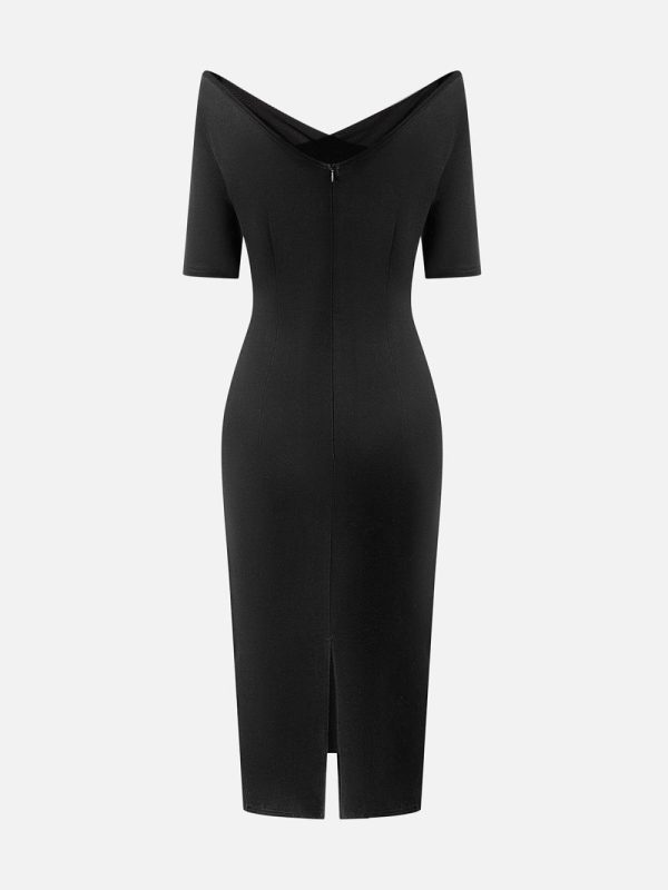 Be the first to review “Women Elegant Plain Mesh Split Joint Cold Shoulder Knee Length Dress | Little Black Dresses”