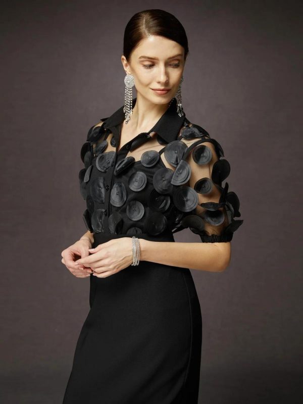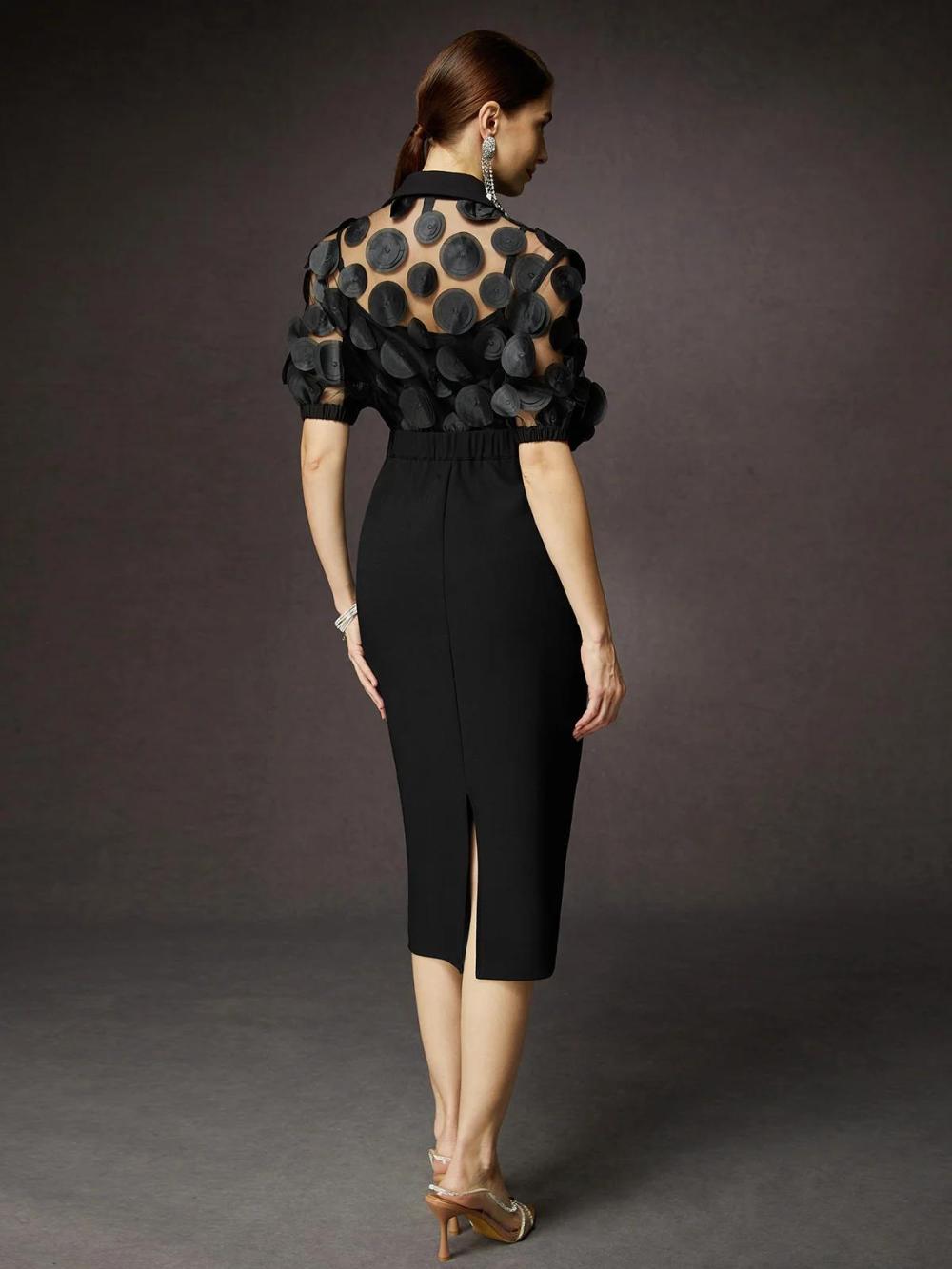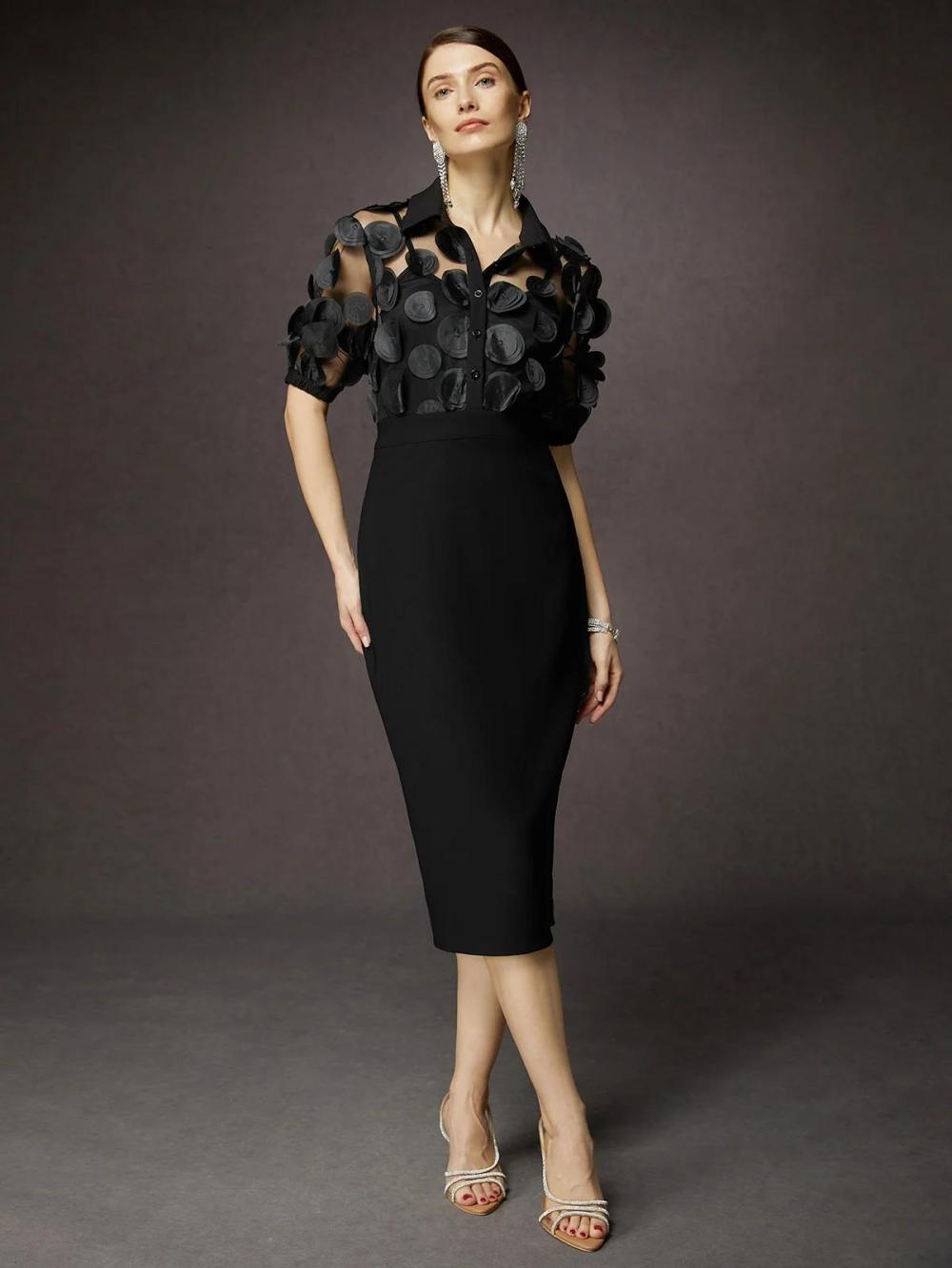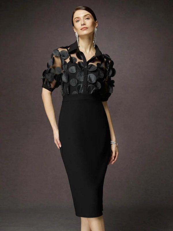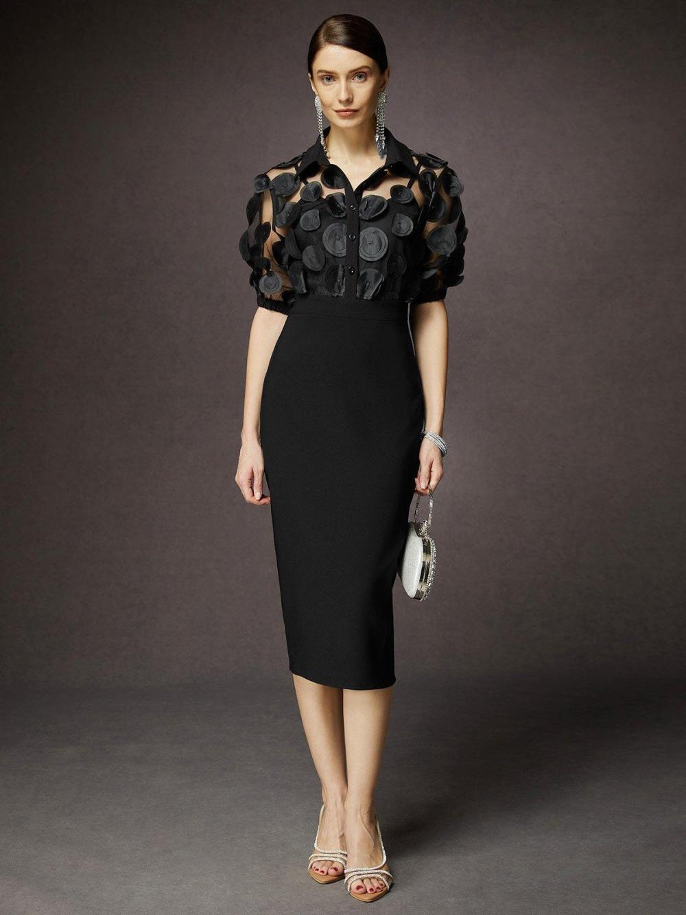Our Textured Panel Party Dress Is The Perfect Blend Of Edgy And Chic. The Geometric Collar And Contrasting Sheer Panels Add Visual Interest, While The Comfortable Fit Ensures You'Ll Feel Confident All Night Long.
