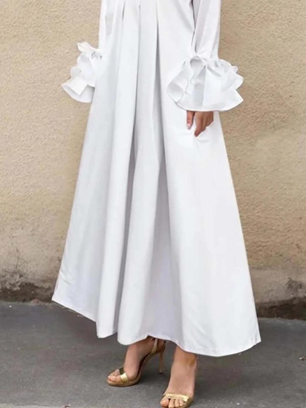 Women Urban Plain Ruffle Sleeve Shirt Collar Maxi Dress | Shirt Dresses